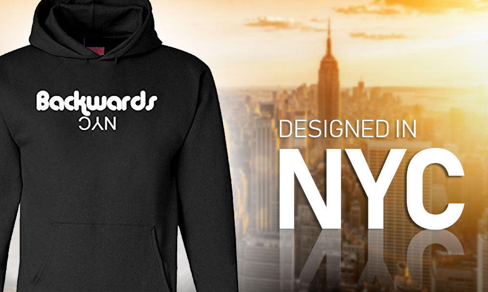 BackwardsNYC Ultimate Comfort and Style: Premium Fabric Hoodie for Men/Women. Black on White, Left Chest