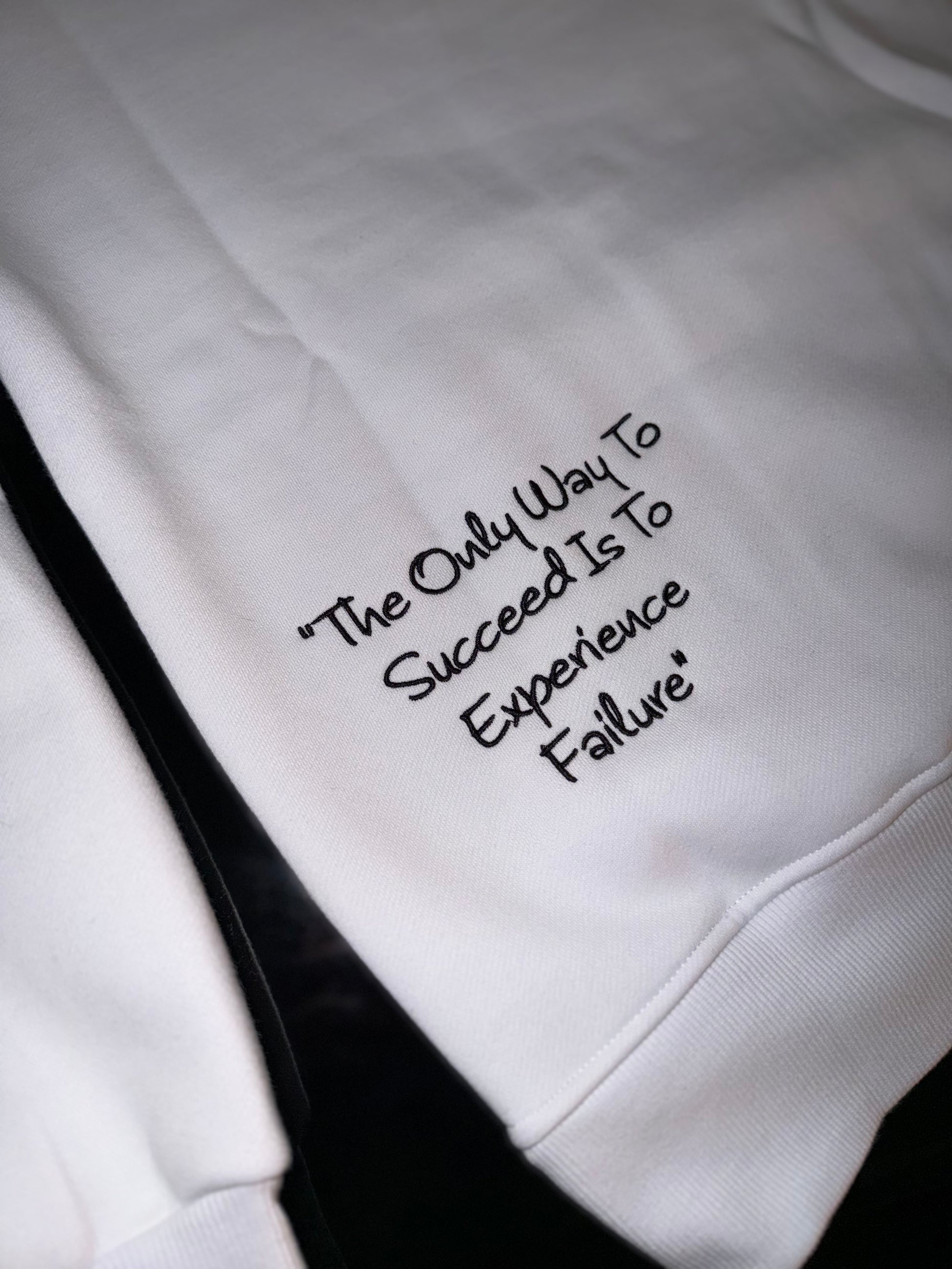 "The only way to succeed is to experience failure." is nicely embroidered and etched on the bottom-left of the back.